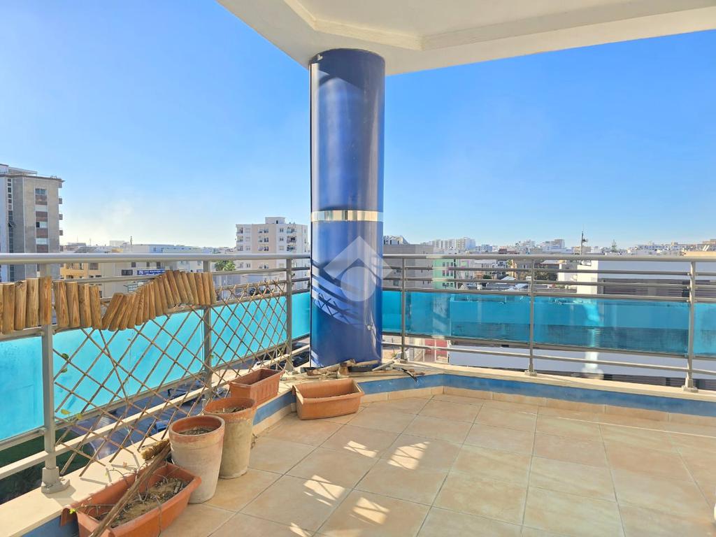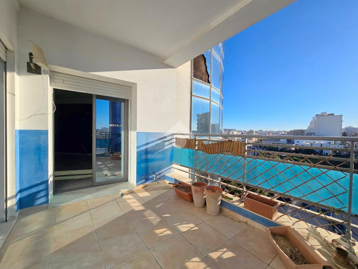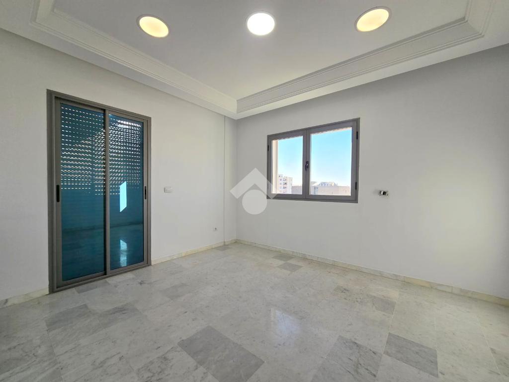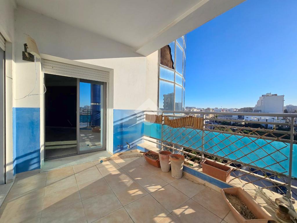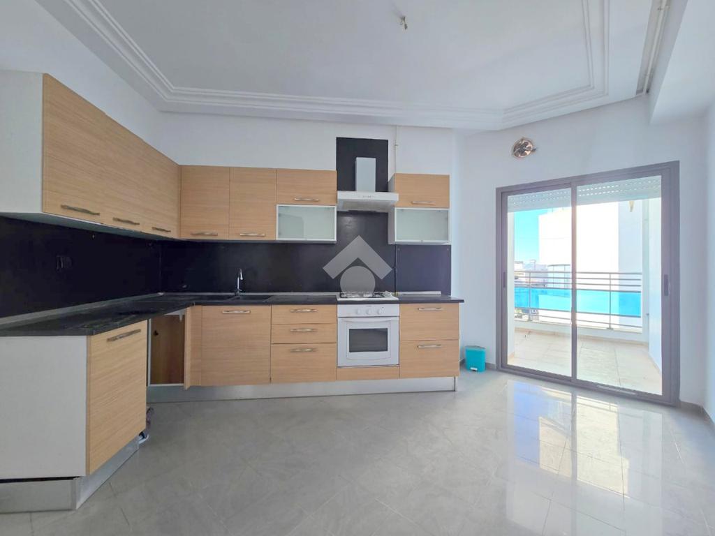 Cet appartement occupe le 4éme étage d'une résidence sécurisé à Sahloul1. La pièce de vie est spacieuse et lumineuse grâce à son accès à un balcon. La cuisine est aménagée par des éléments de rangements et équipée par une plaque de cuisson, une hotte aspirante et un four encastré, elle donne accès un séchoir exploitable. Un dressing au couloir et un point d'eau complètent se compartiment. La partie nuit est composé de trois chambres à coucher et une salle de bain avec baignoire. Une place de parking au sous-sol est disponible pour les futurs occupants.