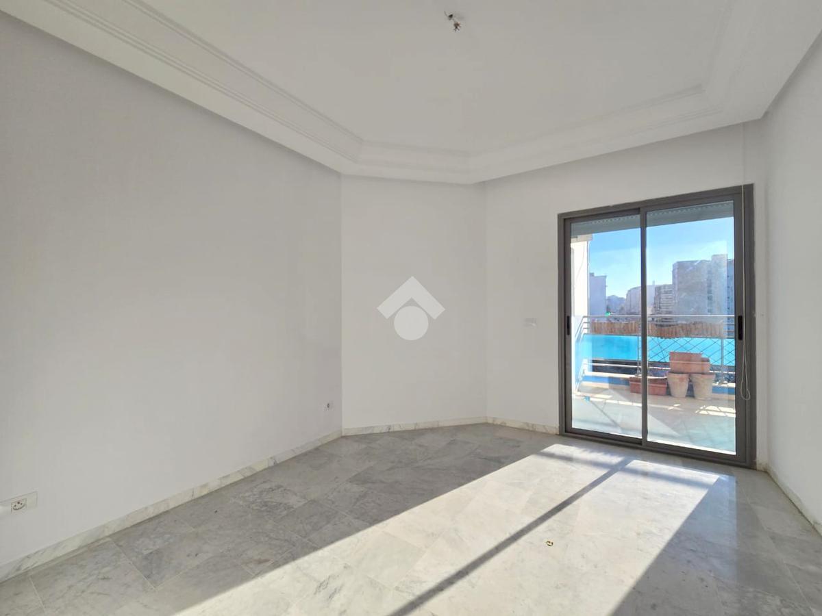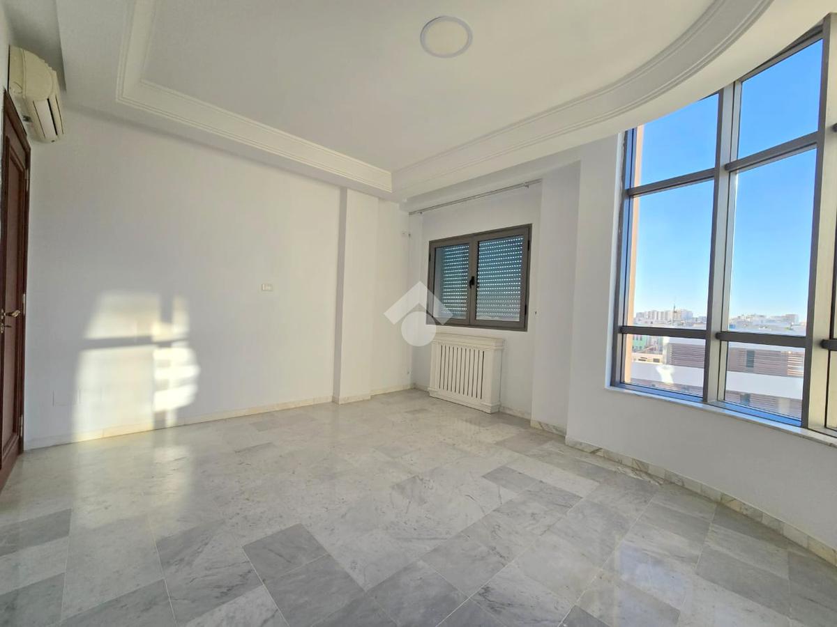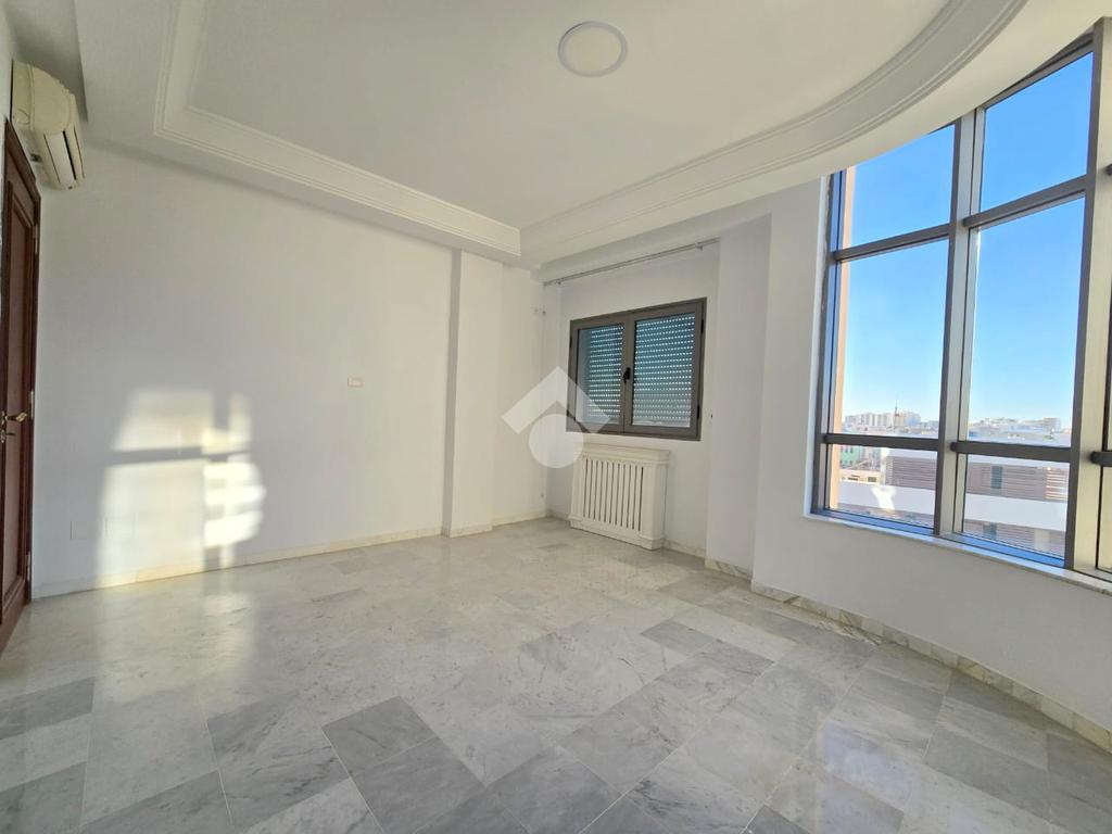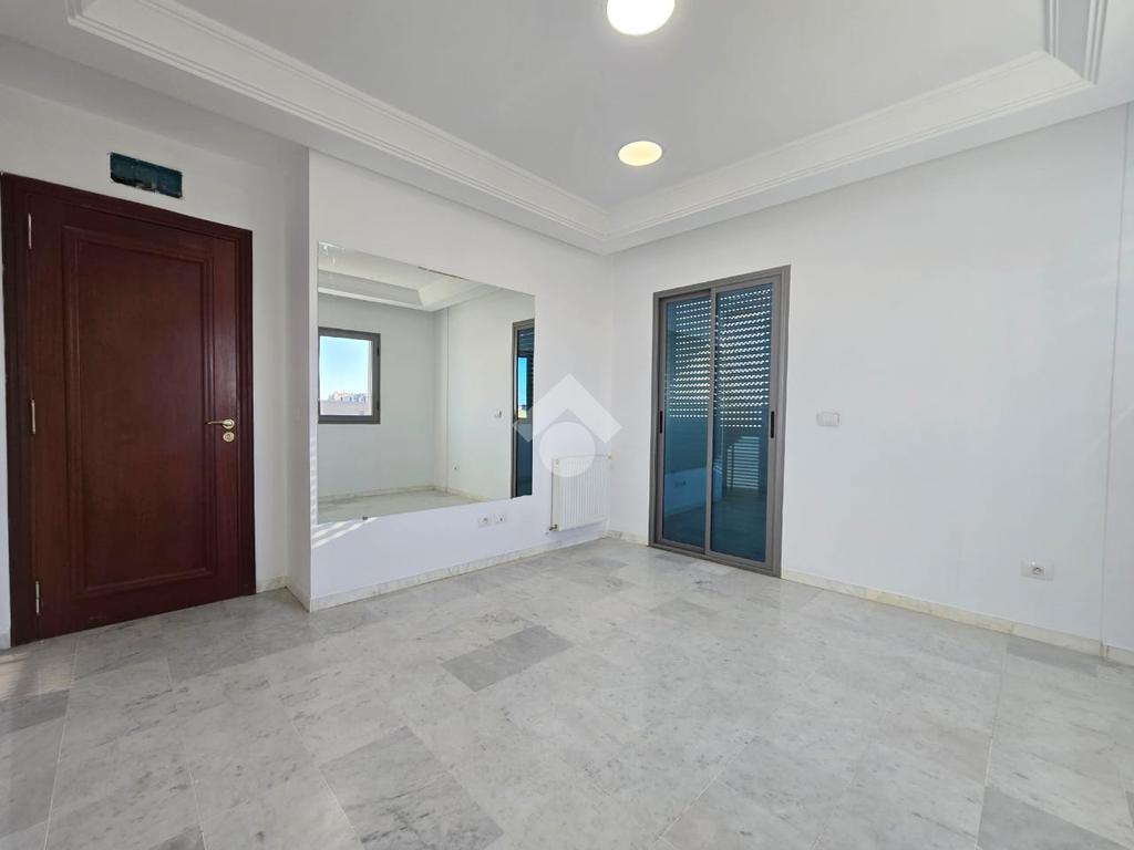 Cet appartement occupe le 4éme étage d'une résidence sécurisé à Sahloul1. La pièce de vie est spacieuse et lumineuse grâce à son accès à un balcon. La cuisine est aménagée par des éléments de rangements et équipée par une plaque de cuisson, une hotte aspirante et un four encastré, elle donne accès un séchoir exploitable. Un dressing au couloir et un point d'eau complètent se compartiment. La partie nuit est composé de trois chambres à coucher et une salle de bain avec baignoire. Une place de parking au sous-sol est disponible pour les futurs occupants.