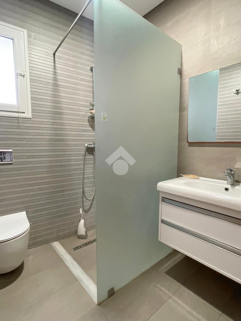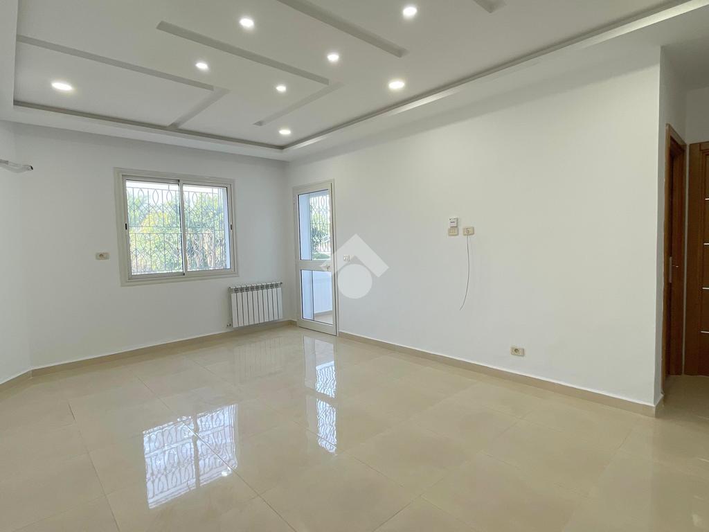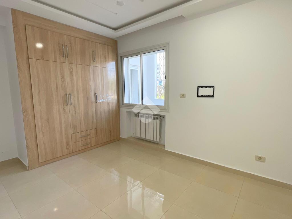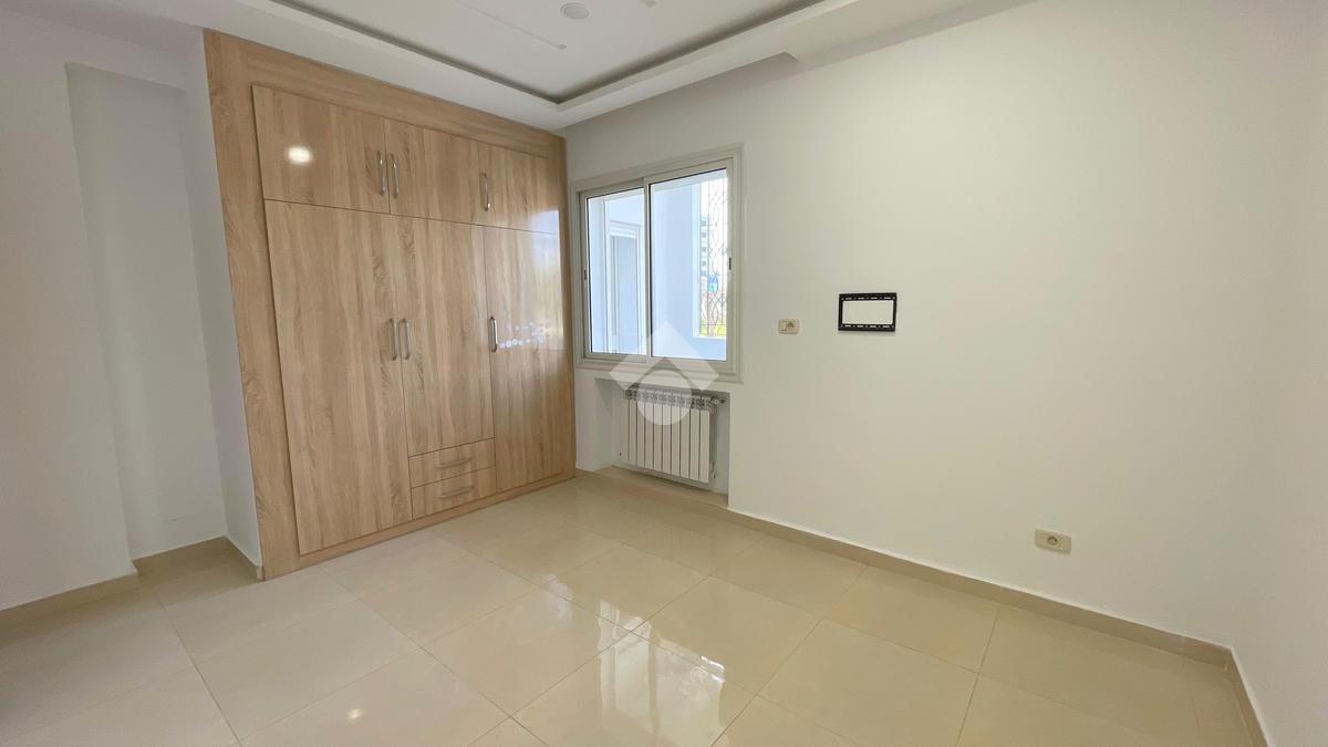Cet appartement occupe le RDC d'un immeuble à Sahloul. L’entrée donne sur une pièce de vie spacieuse et lumineuse La cuisine est aménagée par des éléments de rangement. La partie nuit loge deux chambres à couche avec dressing. Une salle d'eau avec douche est disponible. Un abri est disponible.