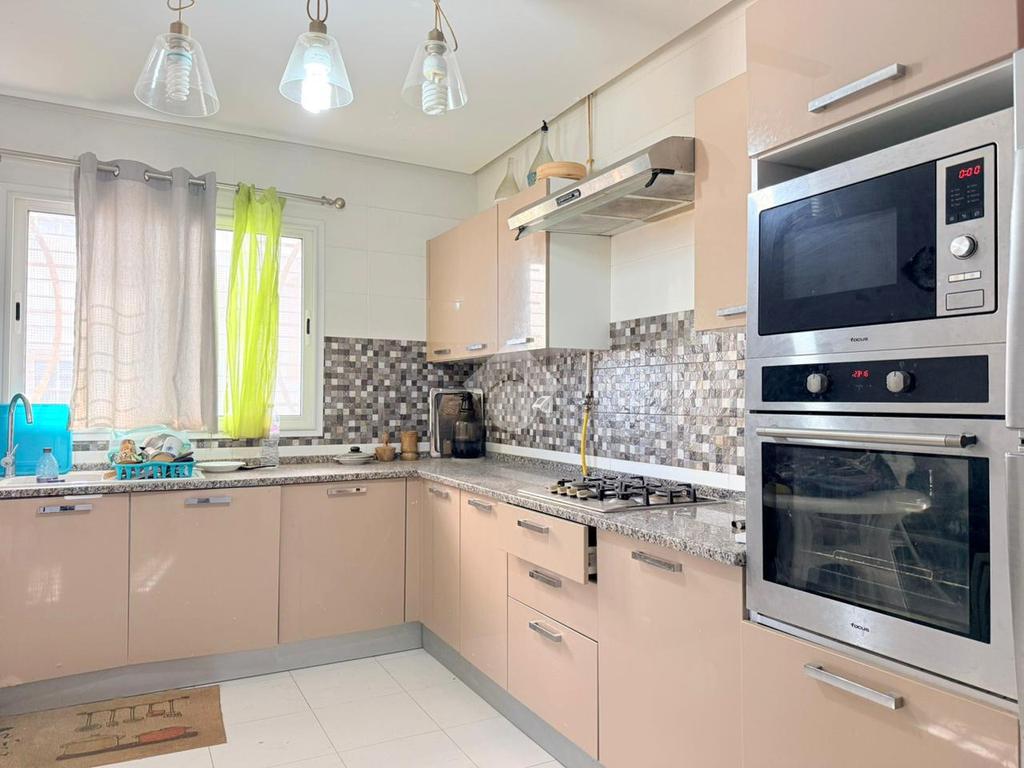 Cet appartement S+2 occupe le cinquième étage d'une résidence récente. Elle est caractérisée par son emplacement stratégique à Sahloul 1. Cet appartement est caractérisé par un espace de vie spacieux qui permet d'aménager un salon et une salle à manger. Il est lumineux grâce à son ouverture sur un balcon. Une cuisine moderne et équipée par tous les éléments des rangements. Elle est complétée par une terrasse de 30m². La partie nuit loge deux chambres à coucher. Une Salle de bain avec un baignoire. Une place de parking sous-sol est disponible.