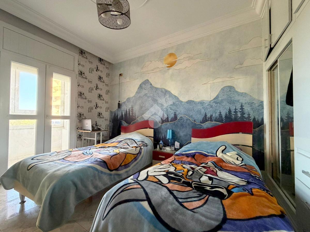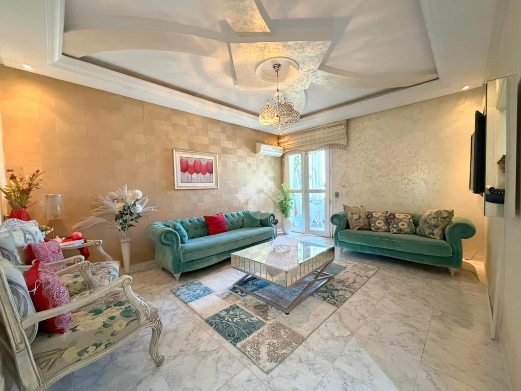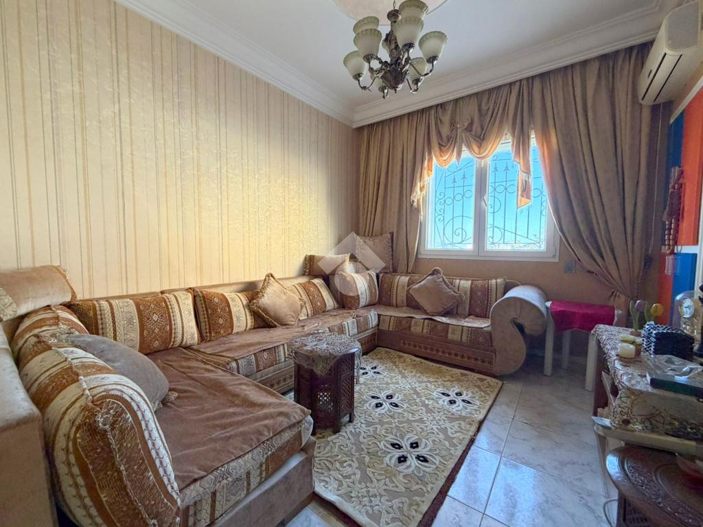 Cet appartement fait partie d’une résidence à Sahloul 1. L'entrée donne sur un salon illuminée grâce à son ouverture sur un balcon. La cuisine est agencée et équipé d'une plaque de cuisson, une hotte aspirante, et un four encastré. Elle se complète par une terrasse. Une salle d'eau est disponible pour les invitées. La partie nuit loge trois chambres à coucher. Elles se partagent une salle de bain avec une cabine de douche.